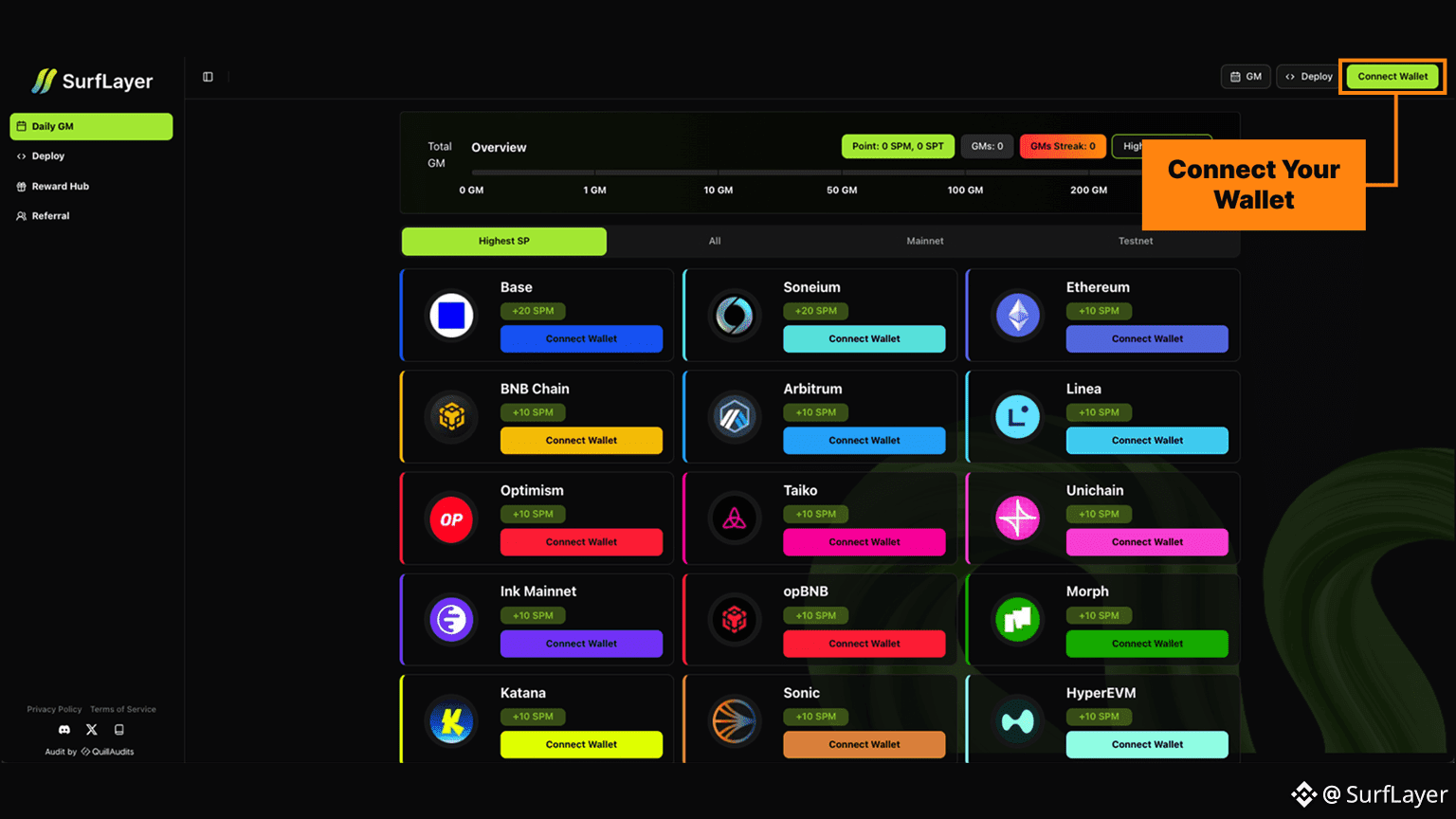 Connect your wallet to SurfLayer at: