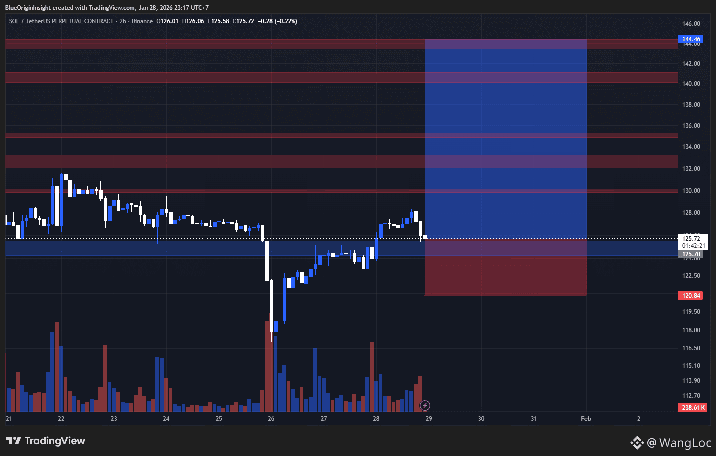 SOL is holding above a key demand zone after a controlled pullback. Structure remains intact, and buyers are stepping in where they should. As long as price stays above 121, this looks like a bullish continuation, not a breakdown.