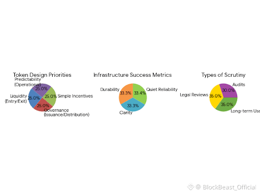 Token design, viewed through an institutional lens, is similarly unglamorous. Liquidity matters not as a proxy for popularity, but as a mechanism for entry and exit without destabilizing operations. Clear issuance and distribution rules reduce governance ambiguity and make balance-sheet treatment more straightforward. The absence of overly complex incentive schemes can be a virtue, as simplicity reduces the risk of unintended behaviors and regulatory misinterpretation. In regulated contexts, the token is less an investment narrative and more an operational component whose behavior must be predictable.