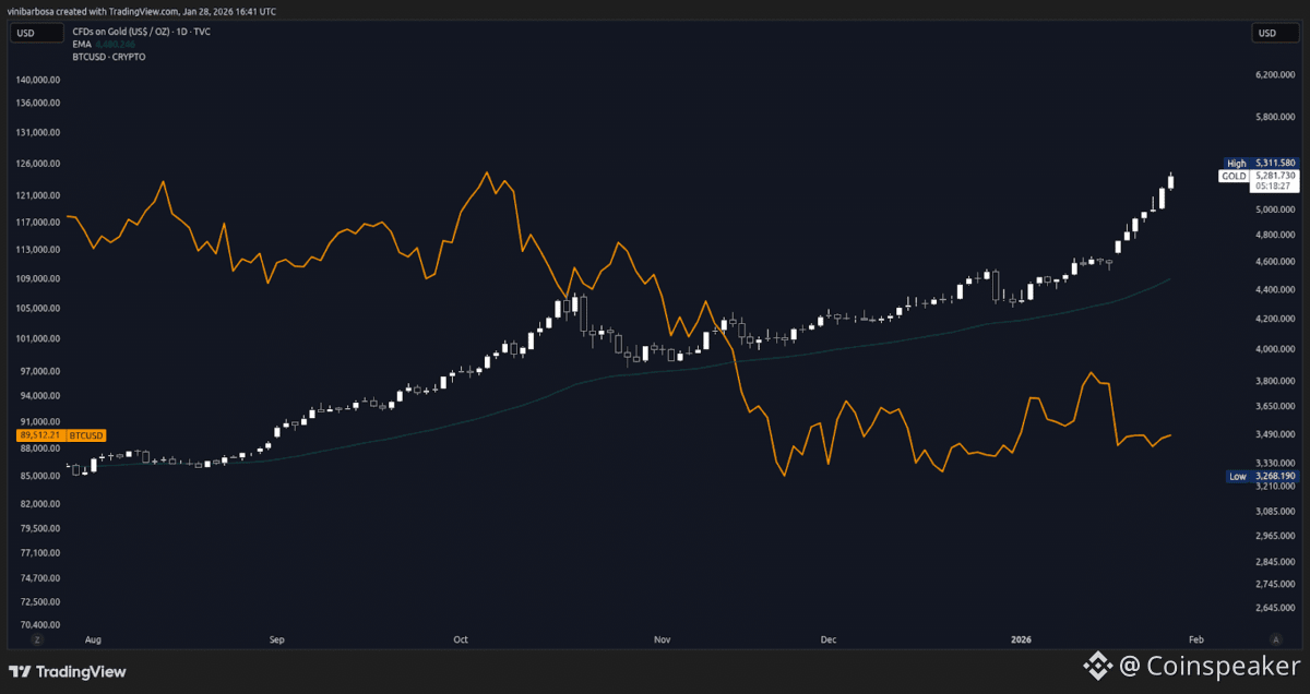 Gold vs. Bitcoin daily price chart as of Jan. 28, 2026 | Source: Trading View