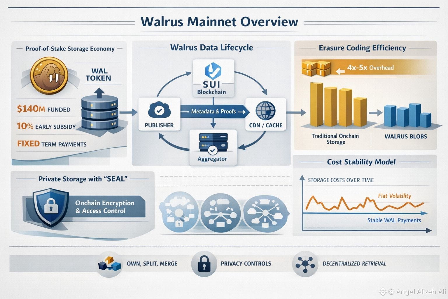 Economics is where storage projects tend to either become usable or become folklore. Walrus says storage payments are designed to keep costs stable in fiat terms: users pay upfront to store data for a fixed time window, and that payment is distributed over time to storage nodes and stakers. It also sets aside early subsidies, including a 10% allocation intended to lower early storage prices while the network grows. Around the mainnet window, the Walrus Foundation announced a $140 million fundraising led by Standard Crypto, which signals that the project expects a long, operational grind—recruiting operators, building tooling, and surviving the unglamorous months of debugging.