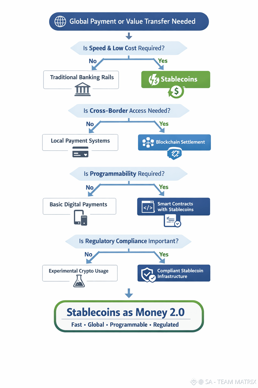 Stablecoins are different they can settle in a few minutes on public blockchains and we can send them directly to someone else no matter where they are in the world without needing to use the big banks.This is really useful for people who do business around the world for people who send money back home and for people in places where it is hard to get good banking services.
