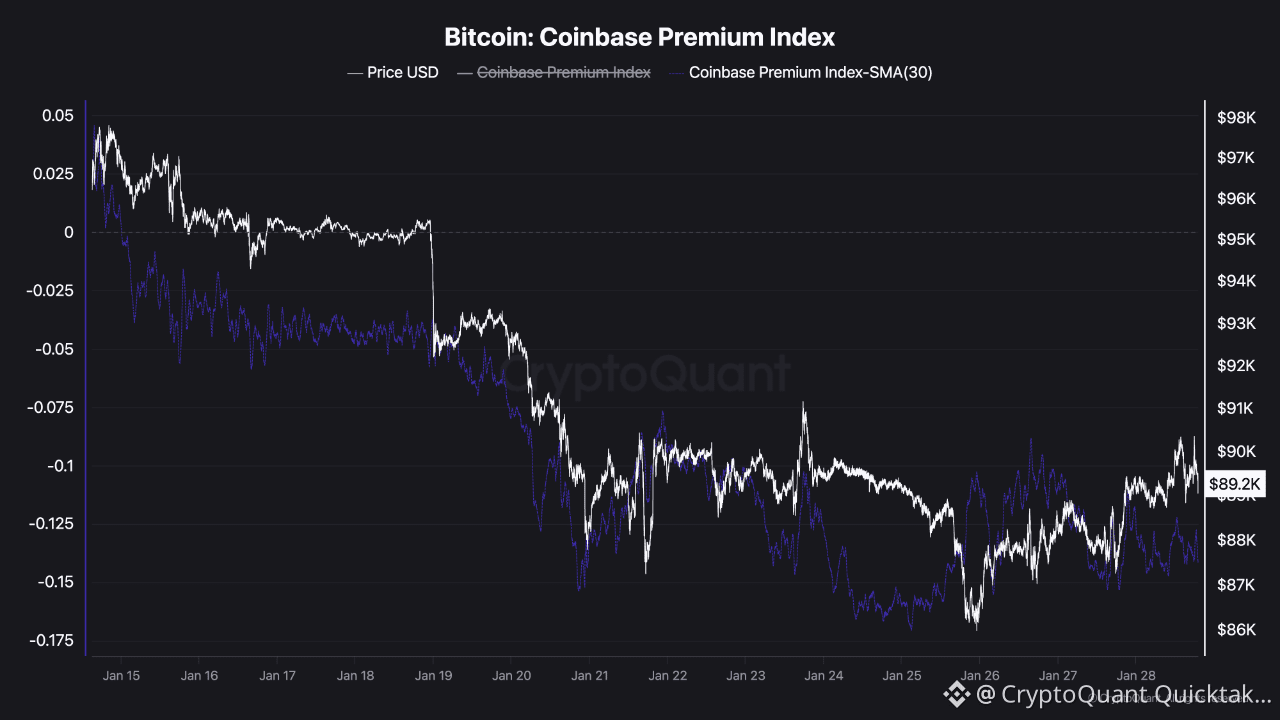 Bitcoin’s price action currently presents an intriguing divergence, holding steady around the $90k level despite Bybit exhibiting distinctive negative funding rates that imply a temporary but aggressive skew toward short-selling (image 1). This derivative pressure appears to coincide with weakness in the spot market, evidenced by a sustained negative Coinbase Premium that suggests persistent spot selling pressure (image 2). Consequently, the market's immediate trajectory will likely be determined by whether broader futures activity across other major exchanges aligns with this specific bearish flow or absorbs it, setting the stage for the next volatility expansion.
