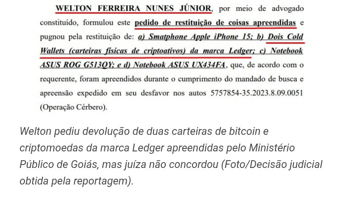 Welton, who had already fallen into the 'Operation Cerberus', wanted back an iPhone 15, two ASUS notebooks, and, especially, two Ledger Cold Wallets, which are those physical wallets for storing cryptocurrency.