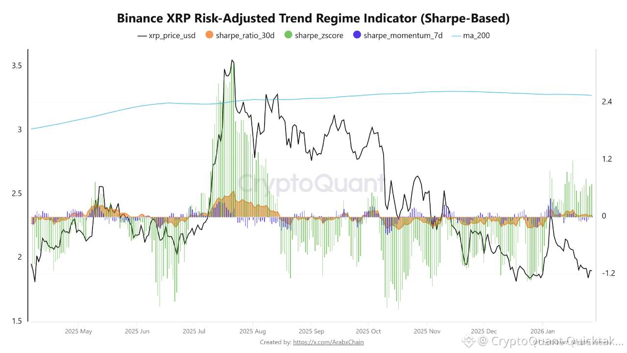 XRP data on Binance indicates a delicate state of cautious equilibrium in the market, with current values reflecting a combination of long-term structural weakness and limited short-term recovery attempts. According to the latest data, XRP is trading at around 1.89, while the 200-day moving average stands near 2.54, meaning the price remains approximately 25% below this average. This discrepancy clearly indicates that the overall long-term trend has not yet transitioned into a sustained uptrend, and that the market is still operating within a corrective range rather than a structural one.