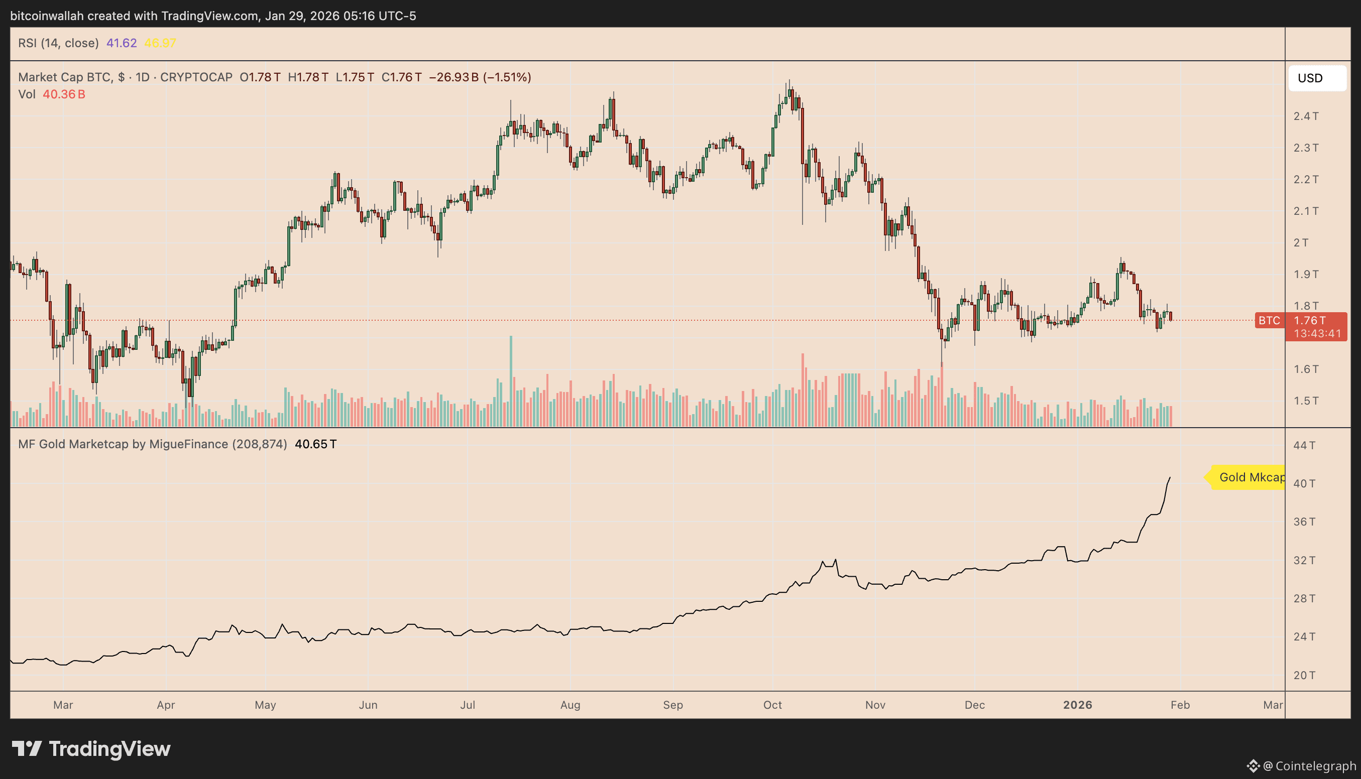 Bitcoin’s small size versus gold amplifies any potential upside even from minor reallocations.