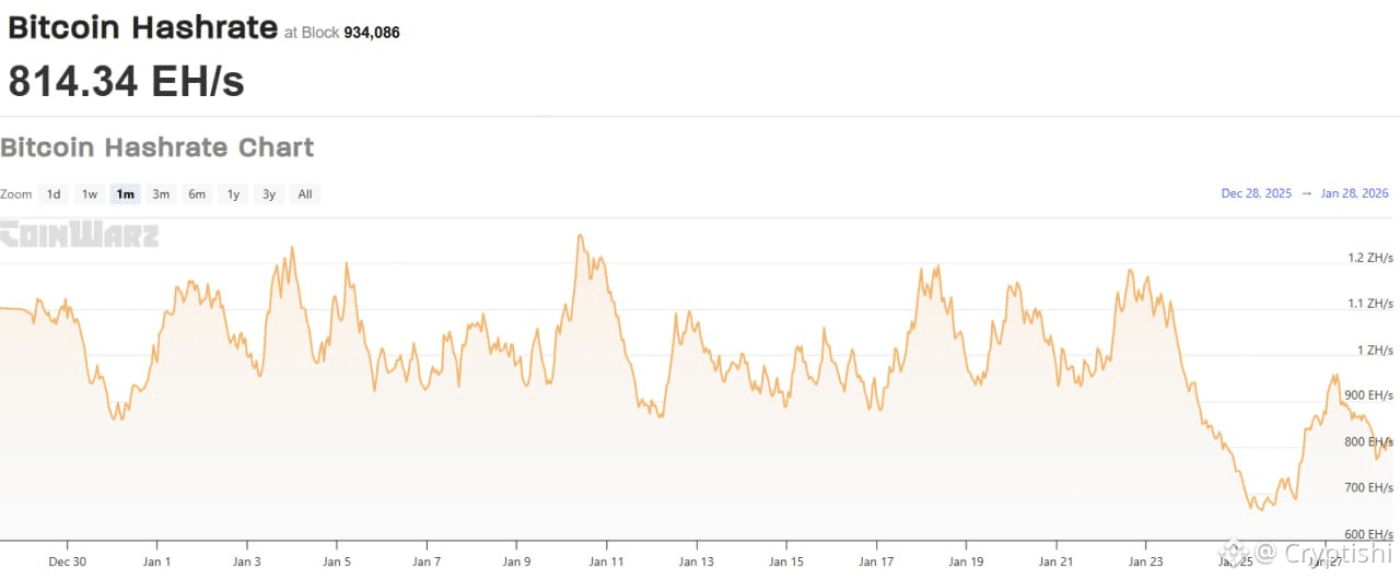 — By Wednesday, recovery to 814 EH/s, but still below the previous ~1.1 ZH/s