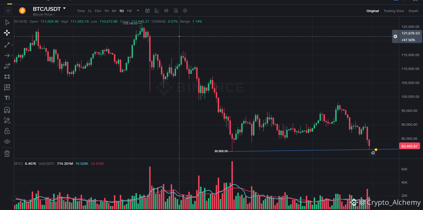 On the weekly, Bitcoin is sitting right in a key demand zone, and it's also testing a major support level from back on November 2nd, around $80,600.