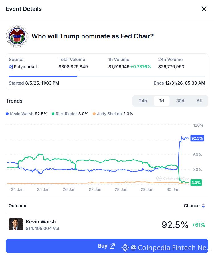 In the past, Warsh was skeptical about Bitcoin and called it too volatile to work as real money. Because of this, traders view his policy approach as less friendly toward crypto.