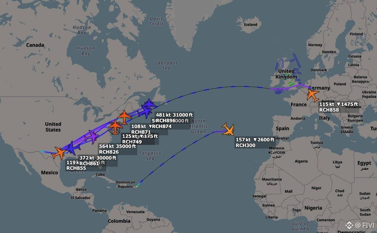 🟠слідом за ними вилетіли стратегічні бомбардувальники B-52H Stratofortress;