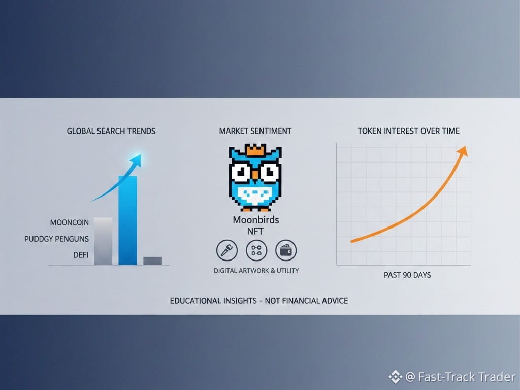 NFT-linked coins like Moonbirds blend two sectors — collectibles and crypto markets. When NFT tokens trend, it often means broader cultural or community attention is growing. For beginners, this underscores how crypto isn’t just financial — it also has social and cultural ecosystems that influence which assets are being discussed. Being aware of trending projects helps learners track evolving use cases within Web3.
