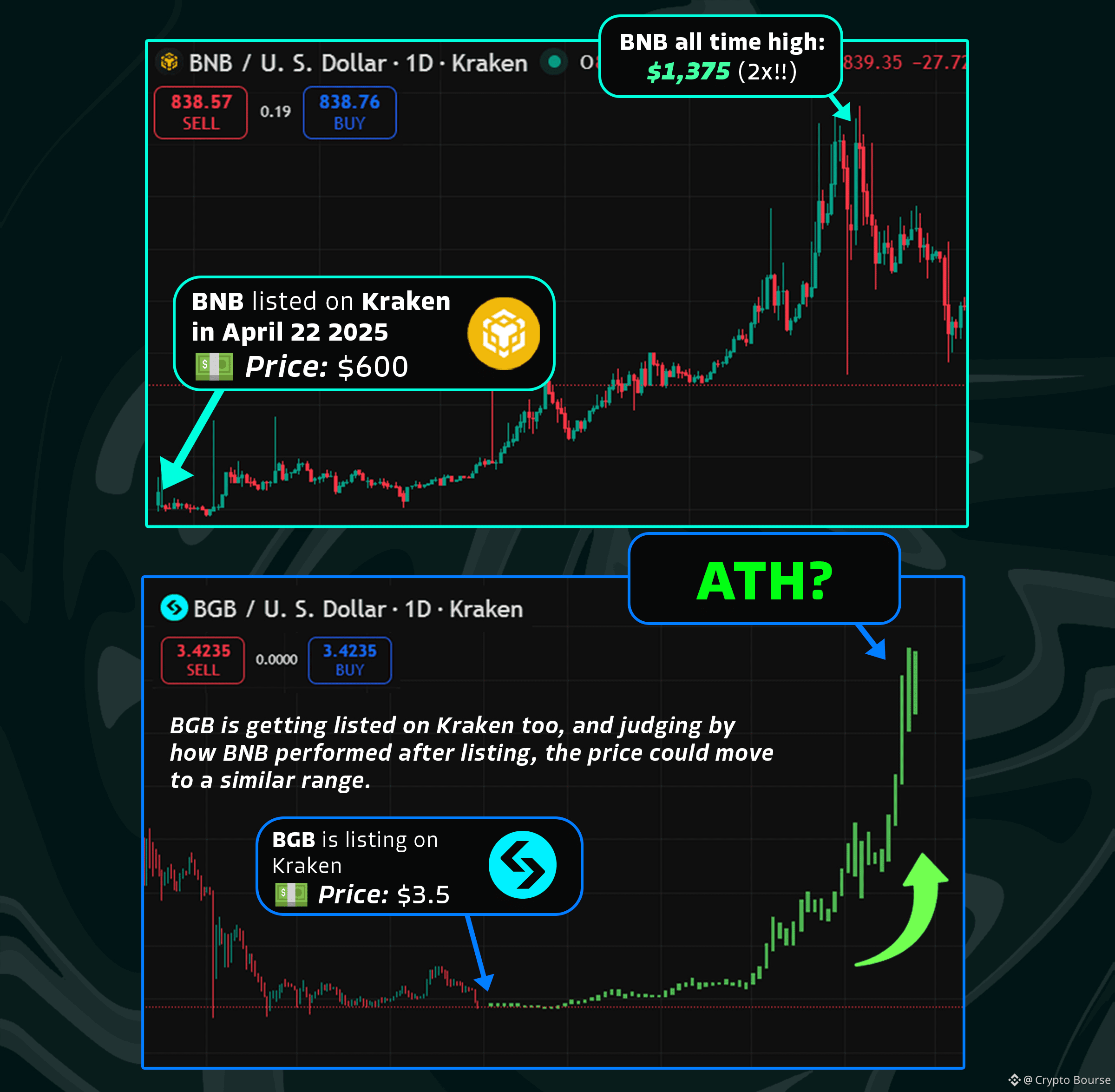 Kraken listing BGB brings back memories of when BNB was listed on Kraken in April 2025.