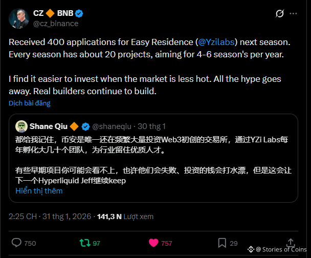 The Easy Residence program by YZi Labs (Binance’s venture investment arm) just received 400 applications for the next batch.