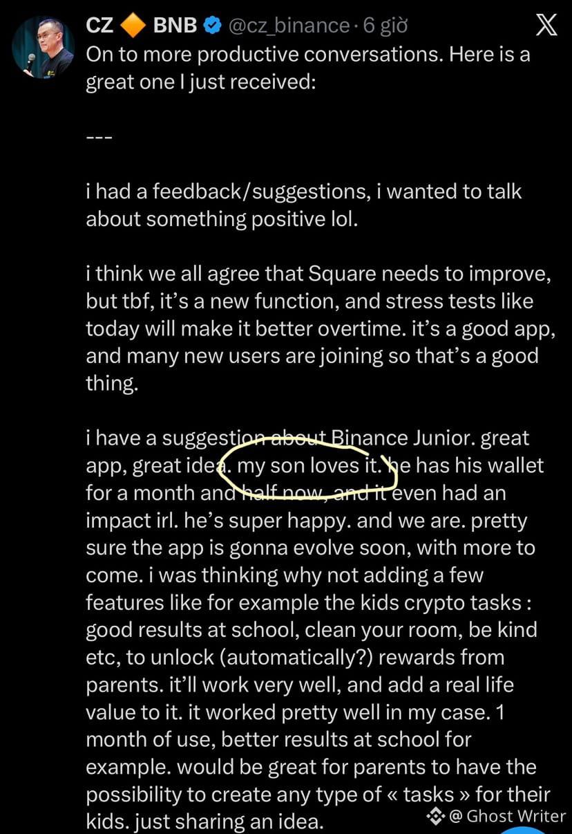 CZ didn’t build Binance by chasing short-term hype. He built it by obsessing over infrastructure, scale, and long-term user behavior. Letting his own child use Binance Junior is a strong signal that this isn’t a side project — it’s a strategic bet on generational adoption.