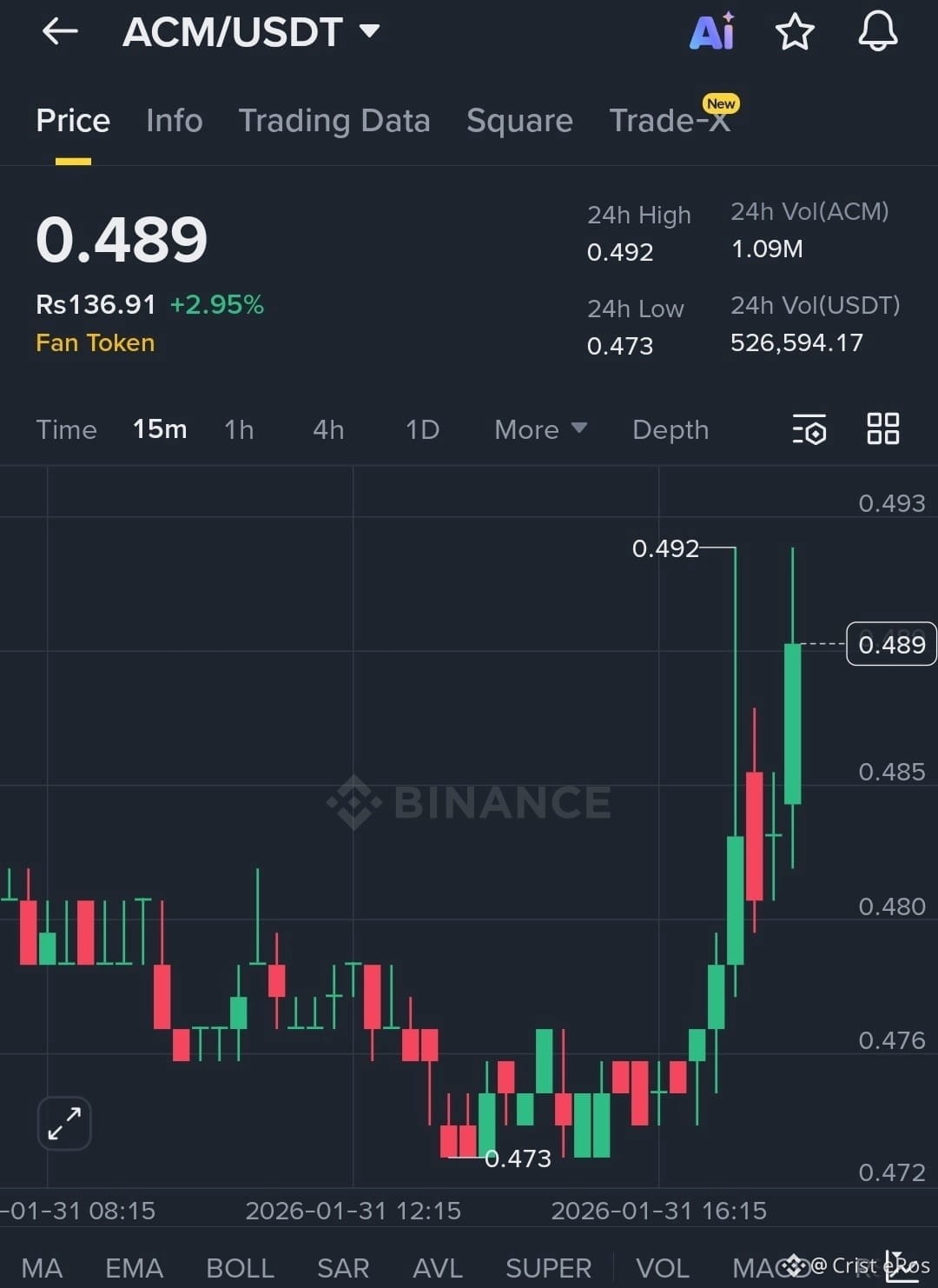 Liquidity was swept below 0.475 before a sharp impulsive move and clean reclaim. Price is consolidating above demand with absorption visible, indicating potential continuation if structure holds.