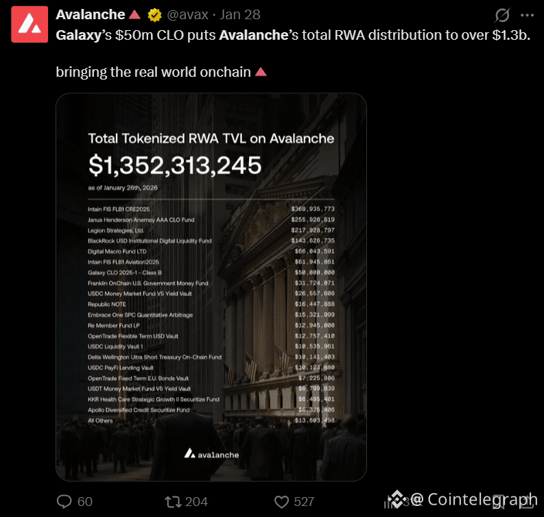 Galaxy has completed a $75 million onchain credit deal using the Avalanche blockchain, including a $50 million anchor allocation from an institutional investor. The deal packages private loans into digital securities that are issued and managed onchain, rather than through traditional back-office systems.