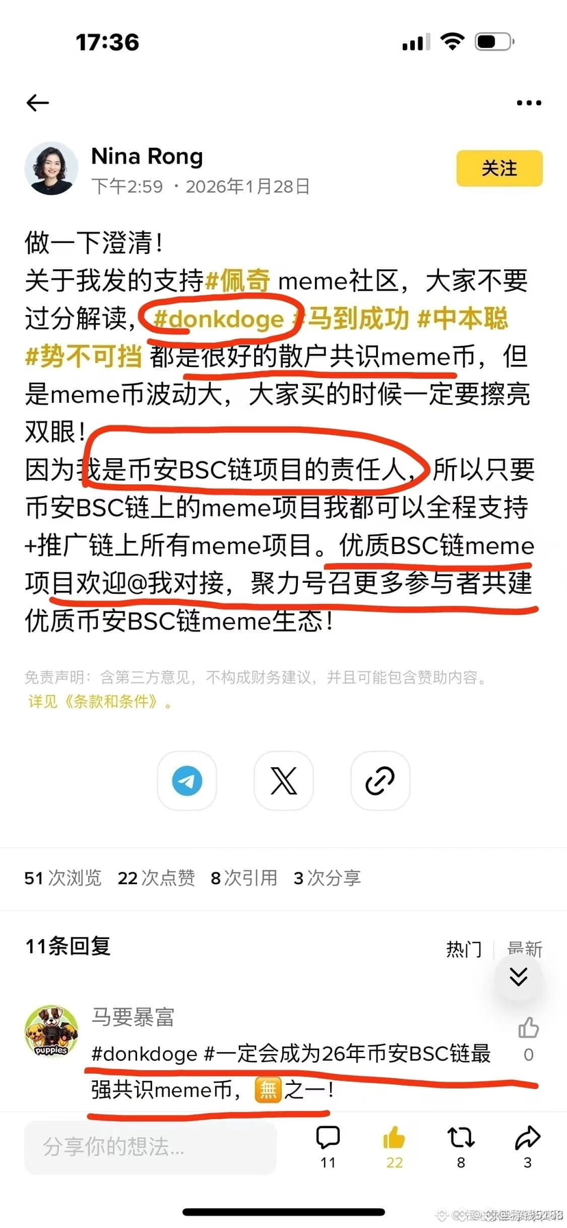 From the project's perspective, Dankdoge's narrative advantage and scarcity design are its core competitive strengths. As a meme coin based on the BNB Smart Chain, Dankdoge is not a simple replication of the Doge Shiba Inu meme, but rather combines the classic Doge culture with privacy attributes, targeting the gap in the anonymous meme coin sector, becoming the first privacy-concept-driven Doge series meme coin. This differentiated narrative allows it to stand out in a market where homogenization is severe. At the same time, its issuance relies on the privacy-focused anoncoinit launch platform, achieving a single token code and a non-forked design, while also connecting with the DogeOS ecosystem. In the future, it is expected to integrate ecosystem tools like wallets and games, freeing the project from the label of ‘pure conceptual hype’ and providing the possibility for ecosystem implementation. More importantly, Dankdoge has received public support from Twitter's product director, Nikitabier, who has a background as a serial entrepreneur in Silicon Valley and purchased about 0.74% of the project's tokens. This endorsement not only brings massive exposure to the project but also allows the market to imagine its connection with the Twitter ecosystem. In terms of community and funding, although Dankdoge has been launched for a short time, the project team has introduced a mechanism for creator rewards and token buybacks, continuously reducing circulation to create a deflationary model. This design is highly similar to the deflationary logic of SHIB, which previously achieved exponential growth, providing fundamental support for price increases; meanwhile, its 3803.73% monthly increase also reflects the market's attention and enthusiasm for this target.