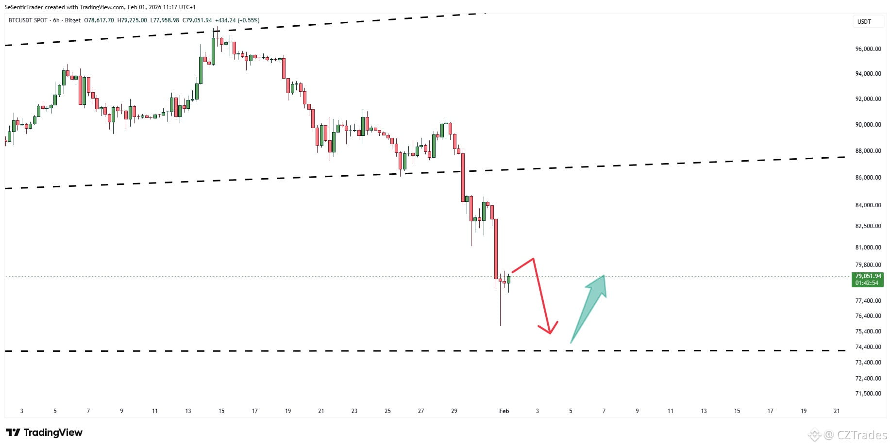 The next major support sits around 74k (≈ $2100 ETH). That’s the only real long zone worth watching.