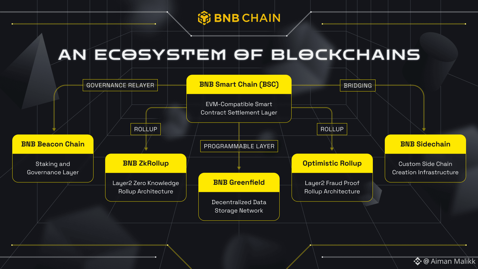 BNB Chain’s real power comes from its unified multi-chain design. Here’s how it all fits together: