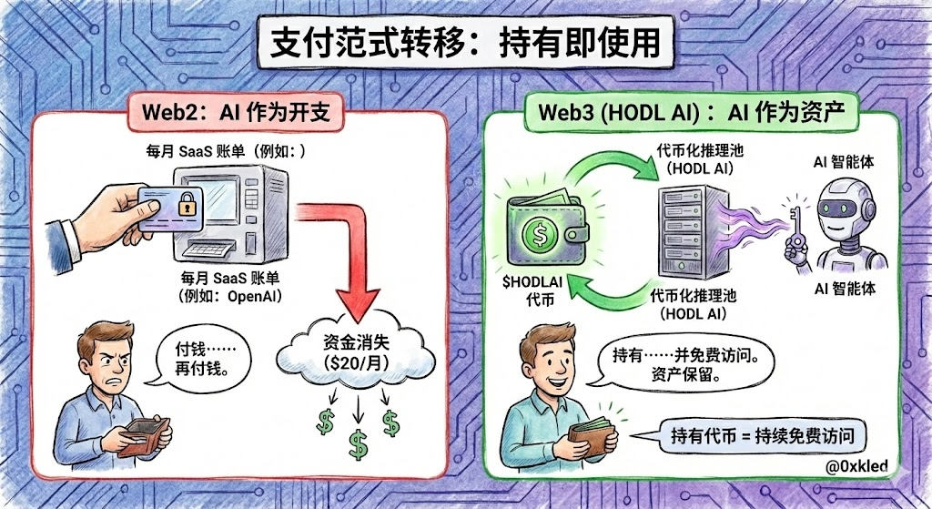 Web3 solution (HODL AI): Offsetting payment actions through token economics. Users are not 'paying', but proving their contributions to the ecosystem by 'holding tokens', thereby obtaining computing resources allocated by the protocol.