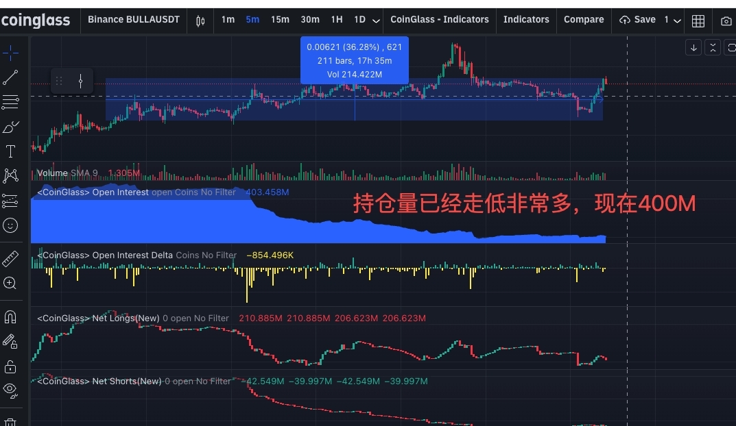 However, we've also achieved a great victory. Since I first posted this article, the price has increased by over 30%, with a peak increase exceeding 60%. And it's probably not over yet; open interest will decrease further, and the price will continue to rise for a while. But don't be greedy; take your profits when it's time to exit, don't linger.