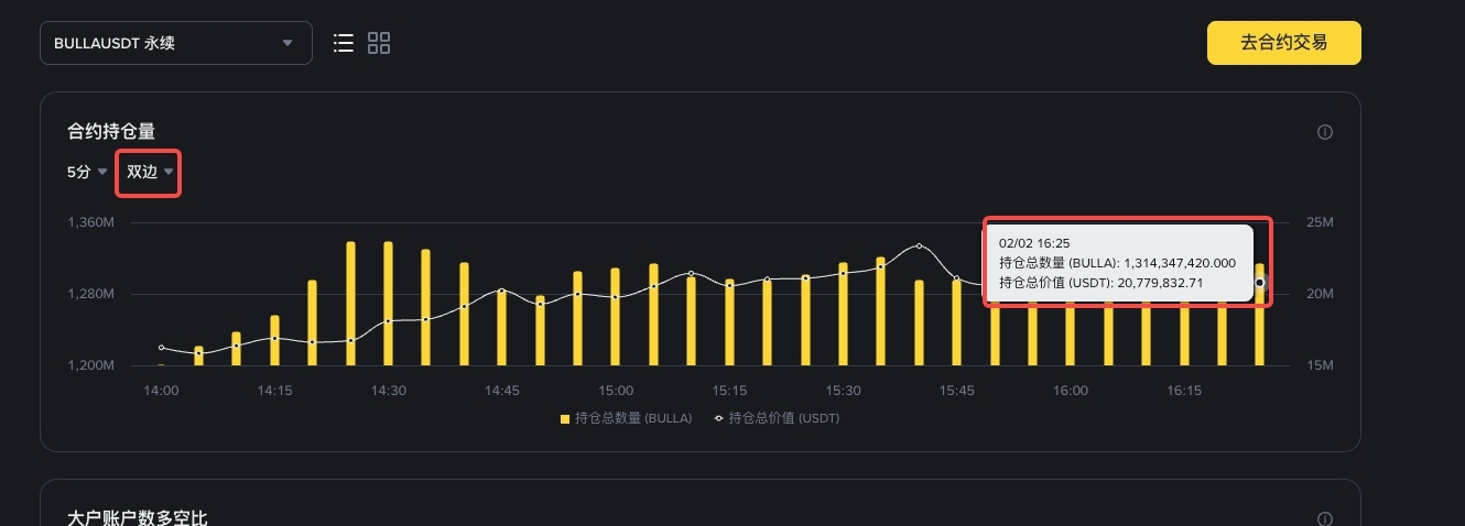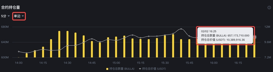 Some users may see data around 650M on the app; this is one-sided data. As you know, one short position in a contract corresponds to one long position, so multiplying the one-sided data by 2 gives you the two-sided data.