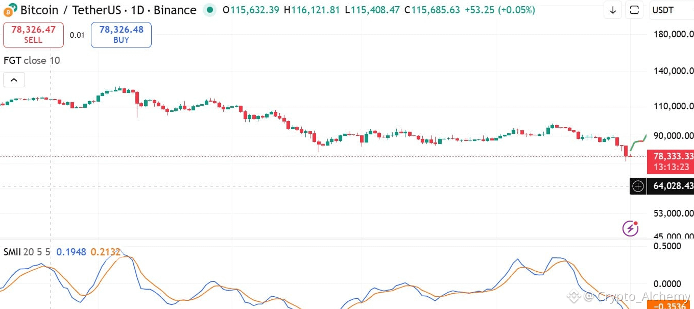 It briefly touched $75,519 before finding a small bounce. Right now, it's hovering around $78,860, down about 4.6% today and 10% over the past week.