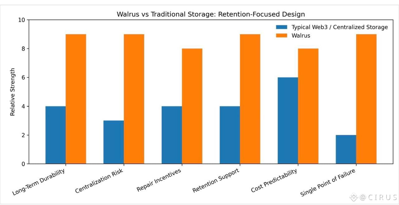 Retention compounds quietly. Each month of reliable storage increases trust. Each year of uninterrupted availability makes migration less attractive. Over time, the system becomes harder to replace not because it is flashy, but because it works.