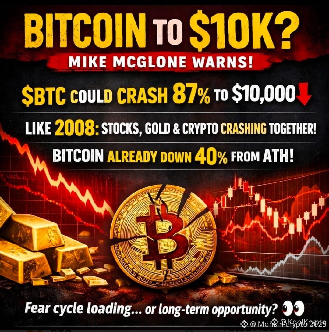 Bloomberg Intelligence senior strategist Mike McGlone has warned that Bitcoin ($BTC) could face a severe downturn if macroeconomic pressure intensifies. In a worst-case scenario, he suggests Bitcoin could crash as much as ~87%, potentially revisiting the $10,000 level 📉.