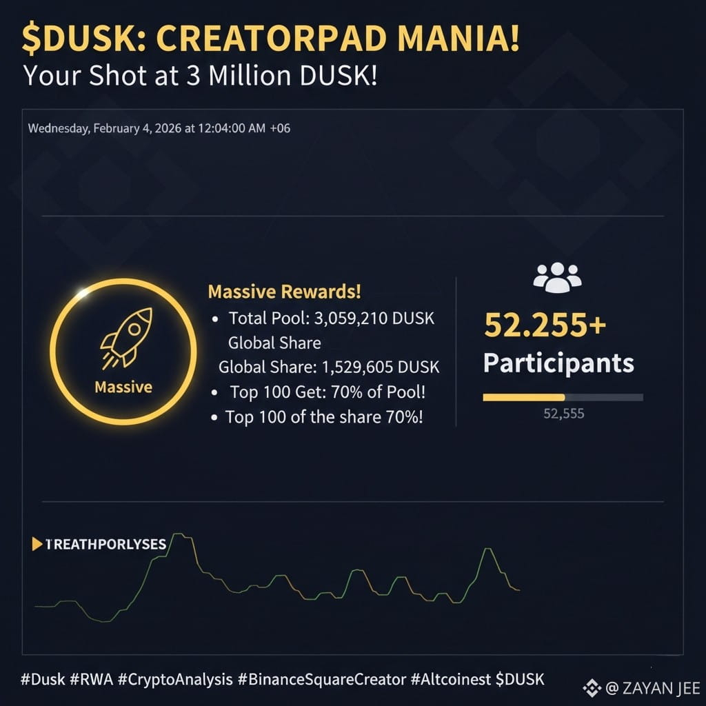The DUSK Global Leaderboard is in full swing with a massive 3,059,210 DUSK reward pool. With over 52,255 participants battling for the top spots, the community hype is at an all-time high.