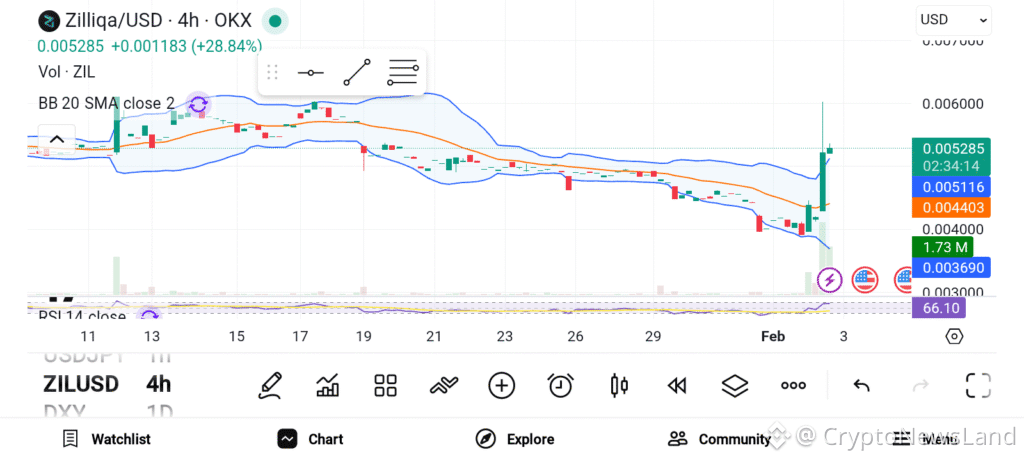From a technical perspective, ZIL continues to trade inside a descending channel. Price action shows compression near the lower boundary, suggesting a possible reaction zone. A bounce from the $0.0039 area would align with recent historical support. For bulls to regain control, price must break above $0.0045 and hold that level as support. Rising trading volume would serve as confirmation for any breakout attempt.