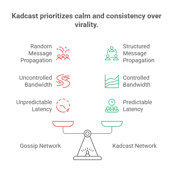 Dusk uses Kadcast instead of pure gossip. Kadcast is a structured overlay network. Messages do not scream randomly. They follow paths. Bandwidth is controlled. Latency becomes predictable.