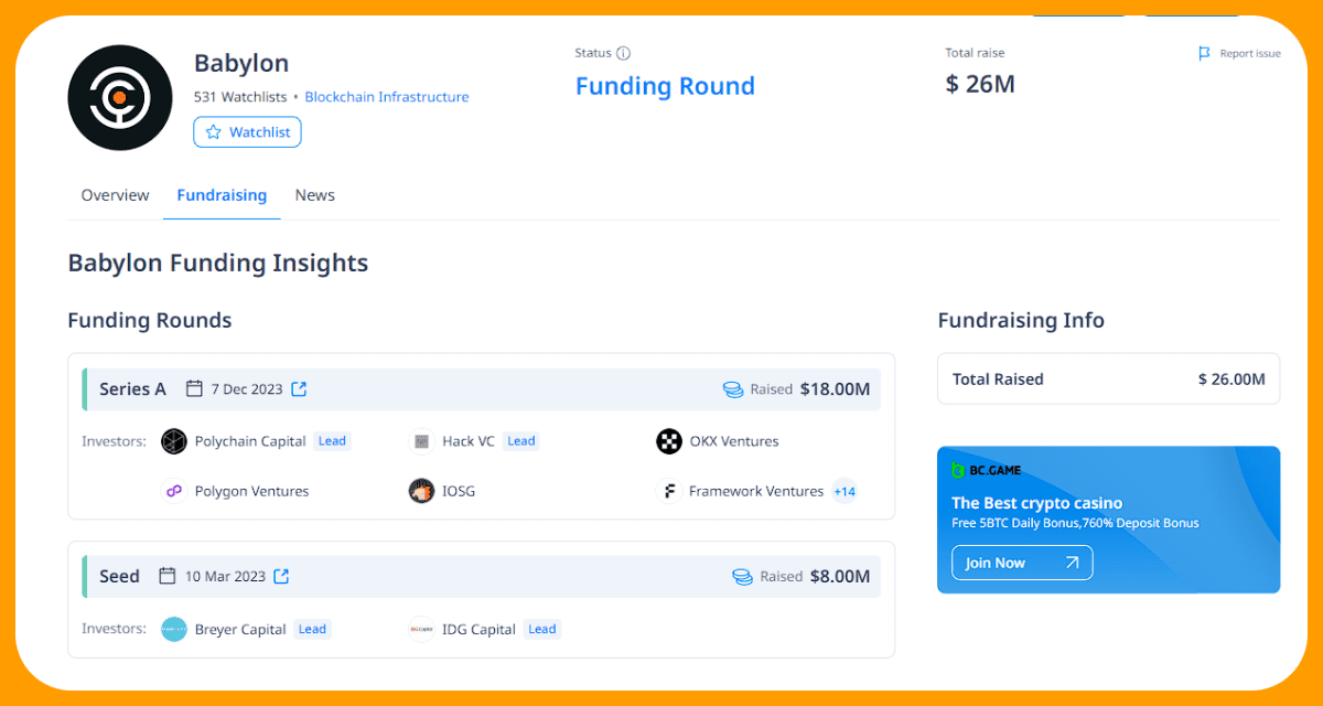 Babylon Chain gained $26M from Top-Tier investors like Polychain Capital, OKX Ventures, Polygon Ventures and others