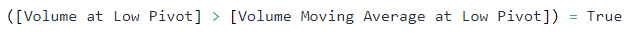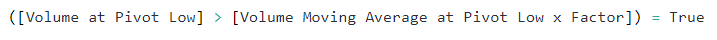 1. Comparison of the volume at the low pivot point against the volume moving average, based on the following criterion: