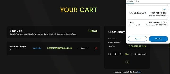 Authorize the token transaction and proceed with minting your domain on the X Layer Chain.