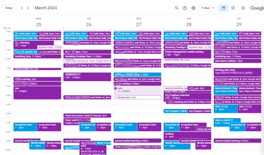 At that time, Manta Pacific's mainnet had just launched. The team members were scattered across various events like stars in the sky, from breakfast meetings to dinners and late-night gatherings, from 9 AM to 11 PM. It was exhausting. On the return flight, I fell asleep three times in six hours.