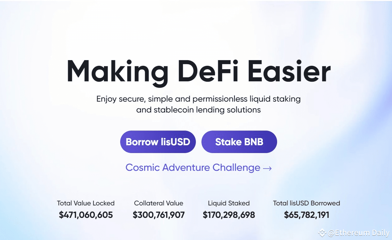 Major Components: BNB liquid staking token (slisBNB) and decentralized stablecoin (lisUSD).