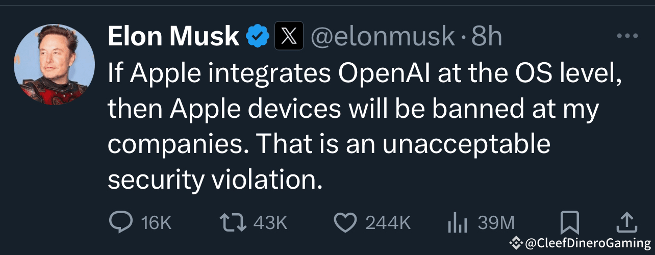Elon Musk has issued a stern warning to Apple, stating he will ban the use of Apple devices across all his companies if OpenAI is integrated at the operating system level. Musk described this potential integration as "an unacceptable security violation," sparking significant debate within the tech community.