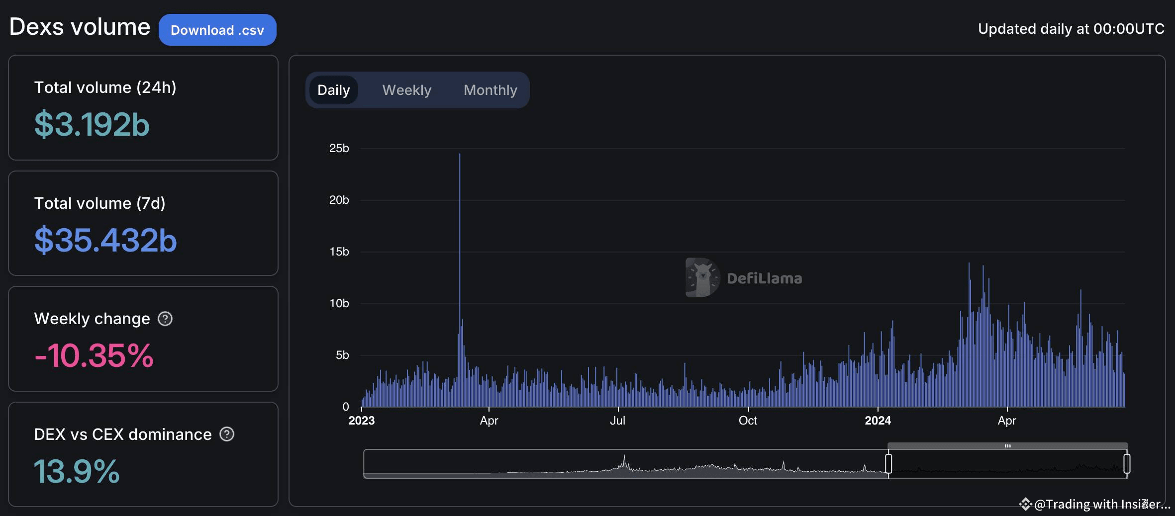Trading volume on DEX is at $3.1B, similar to the average DEX volume in February 2024 when BTC was at $52k.