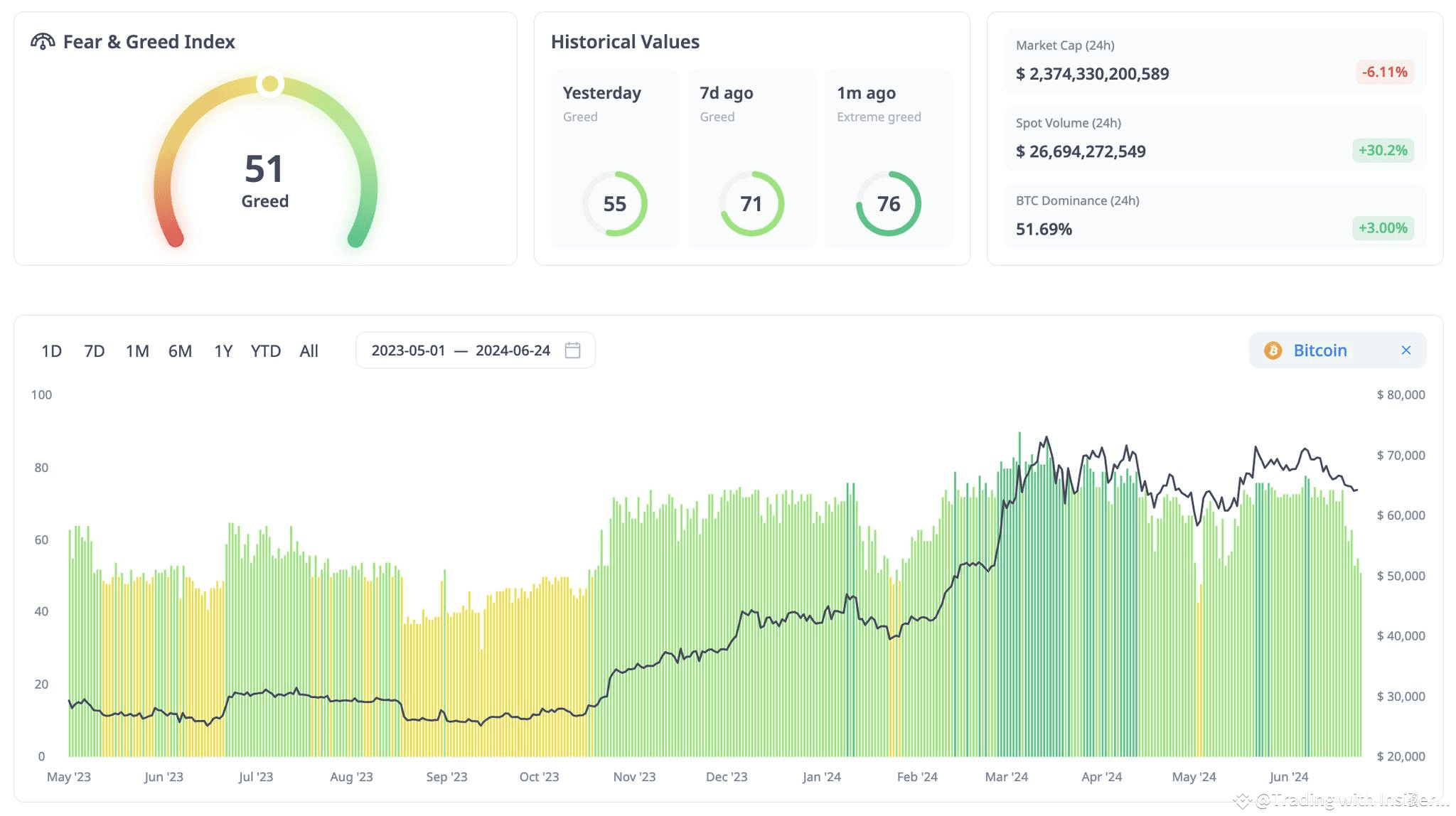 Investor sentiment is gradually shifting towards fear, and if BTC continues to decline, I hope to see this index reach 48 or 43 (which I think is the max pain of this cycle).
