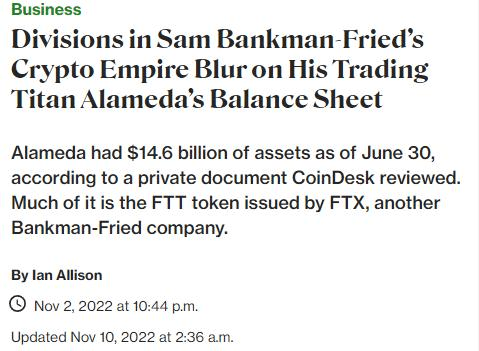 El informe encontró que otra empresa llamada Alameda, establecida por SBF, se dedicaba principalmente a inversiones de alto riesgo y altamente apalancadas, pero el 88% de los principales activos registrados en su cuenta eran tokens FTT emitidos por su propio intercambio FTX.