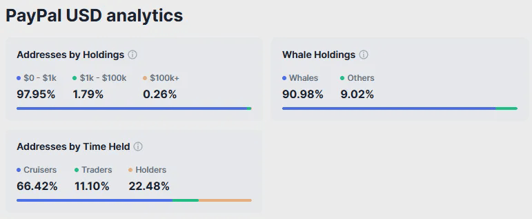 Esta concentración no solo genera preocupaciones sobre la liquidez de PYUSD, sino que también plantea muchas preguntas sobre su estabilidad futura. Junto con muchas otras nuevas stablecoins, el suministro puede depender no solo de la aceptación por parte de los consumidores, sino también de las billeteras relacionadas con el equipo de desarrollo de estas monedas.