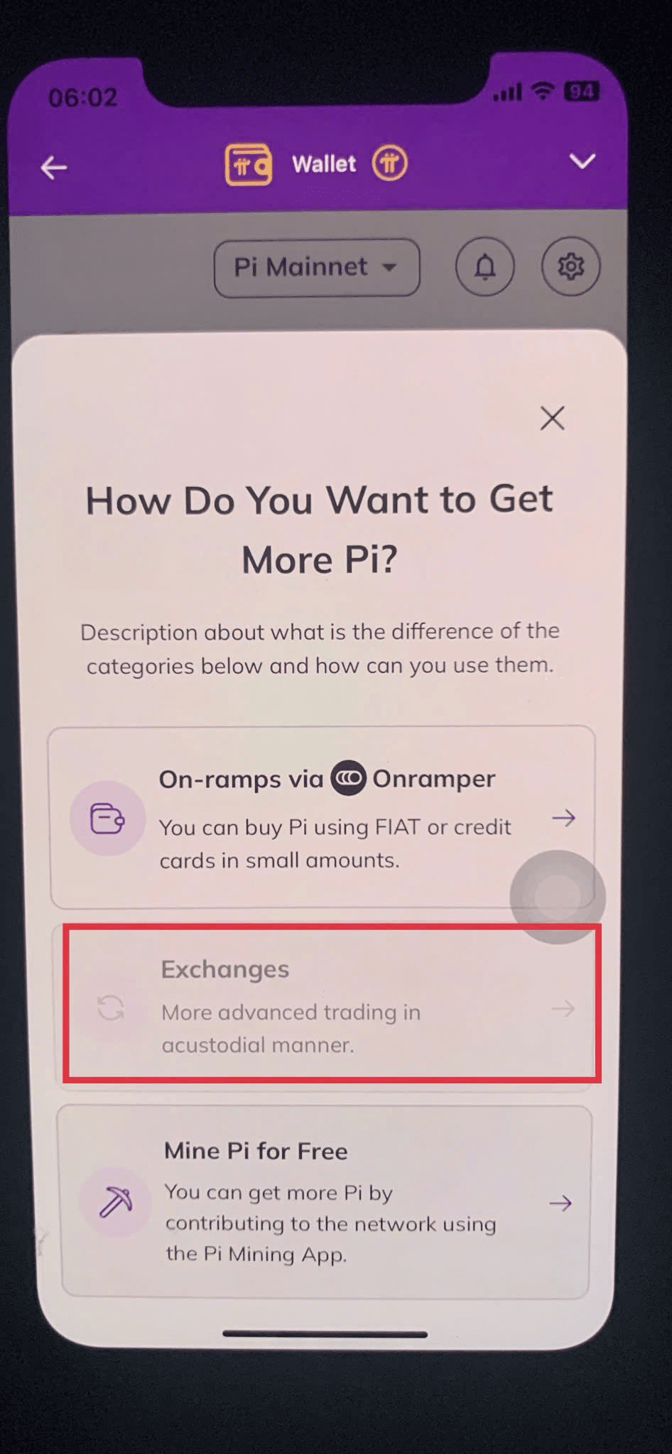 🔹 Intercambia instantáneamente Pi por monedas de primer nivel directamente en la billetera oficial de Pi