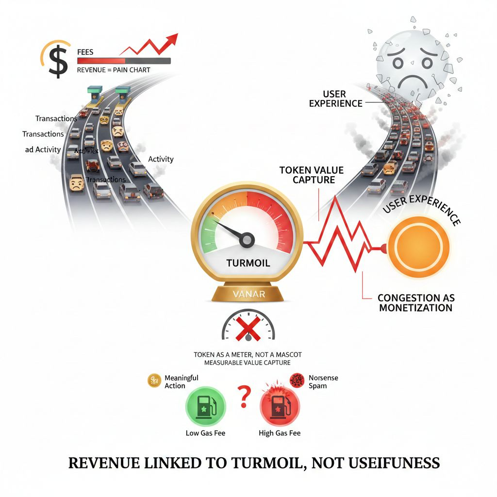 La idea de monetización de cripto predeterminada es tan familiar ahora que la gente apenas la cuestiona. Vendes espacio en bloque. Dejas que la demanda eleve el gas. Tratas el mercado de tarifas como "ingresos." Y sí, el gas cumple su función como filtro de spam y mecanismo de control de congestión. Pero el gas es un terrible proxy para la creación de valor real, y se vuelve obvio en el momento en que dejas de mirar gráficos agregados y comienzas a ver lo que realmente está sucediendo. Una acción genuinamente significativa puede costar lo mismo que spam sin sentido. Un evento de verificación de alta integridad puede ser valorado como un clic sin sentido. Un usuario haciendo algo que crea un valor económico o social real podría pagar el mismo peaje que alguien que simplemente está inundando la red con actividad sin sentido. La cadena no puede distinguir el valor del ruido, por lo que cobra un peaje que a menudo no tiene nada que ver con lo que el usuario realmente logró. Luego, cuando la demanda se dispara, la cadena gana más precisamente cuando los usuarios están teniendo la peor experiencia. Los ingresos se vinculan al tumulto, no a la utilidad. La red "gana" al volverse menos utilizable.