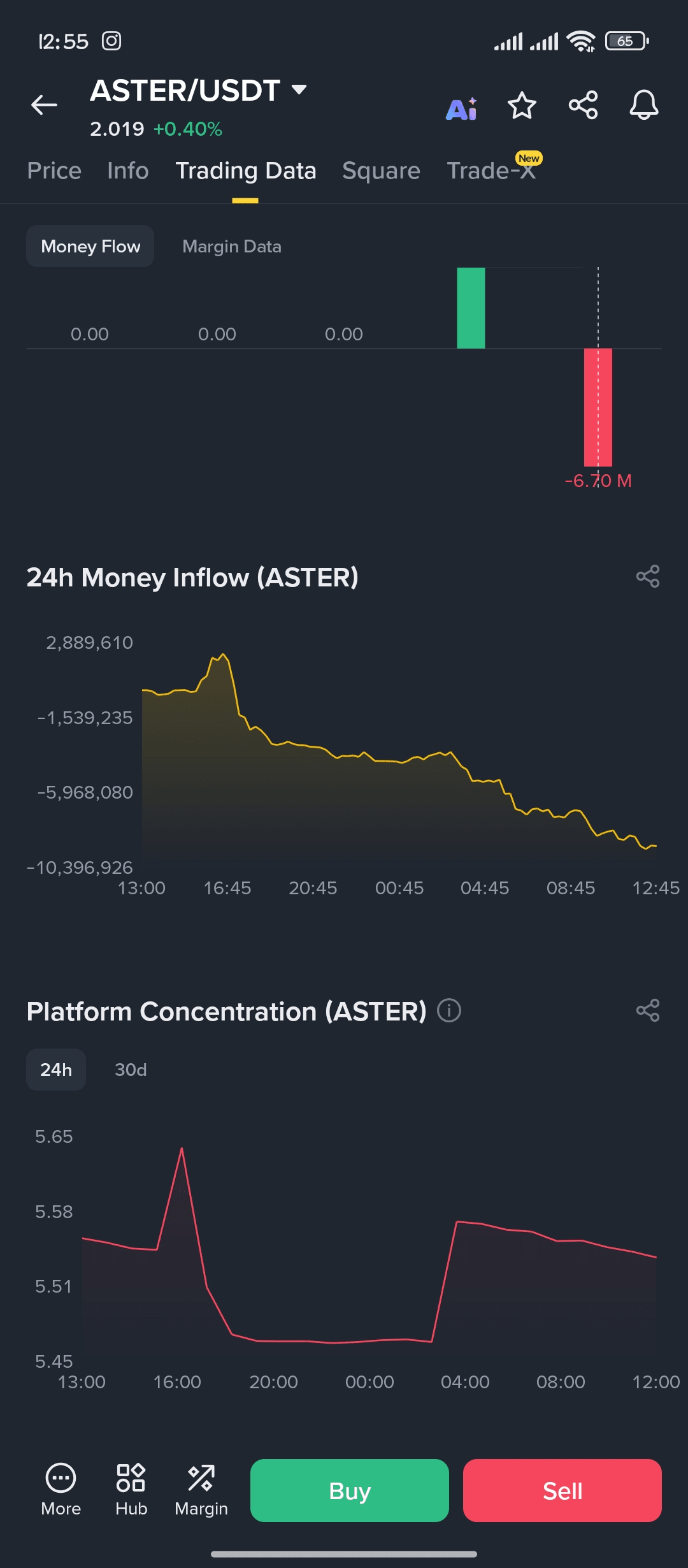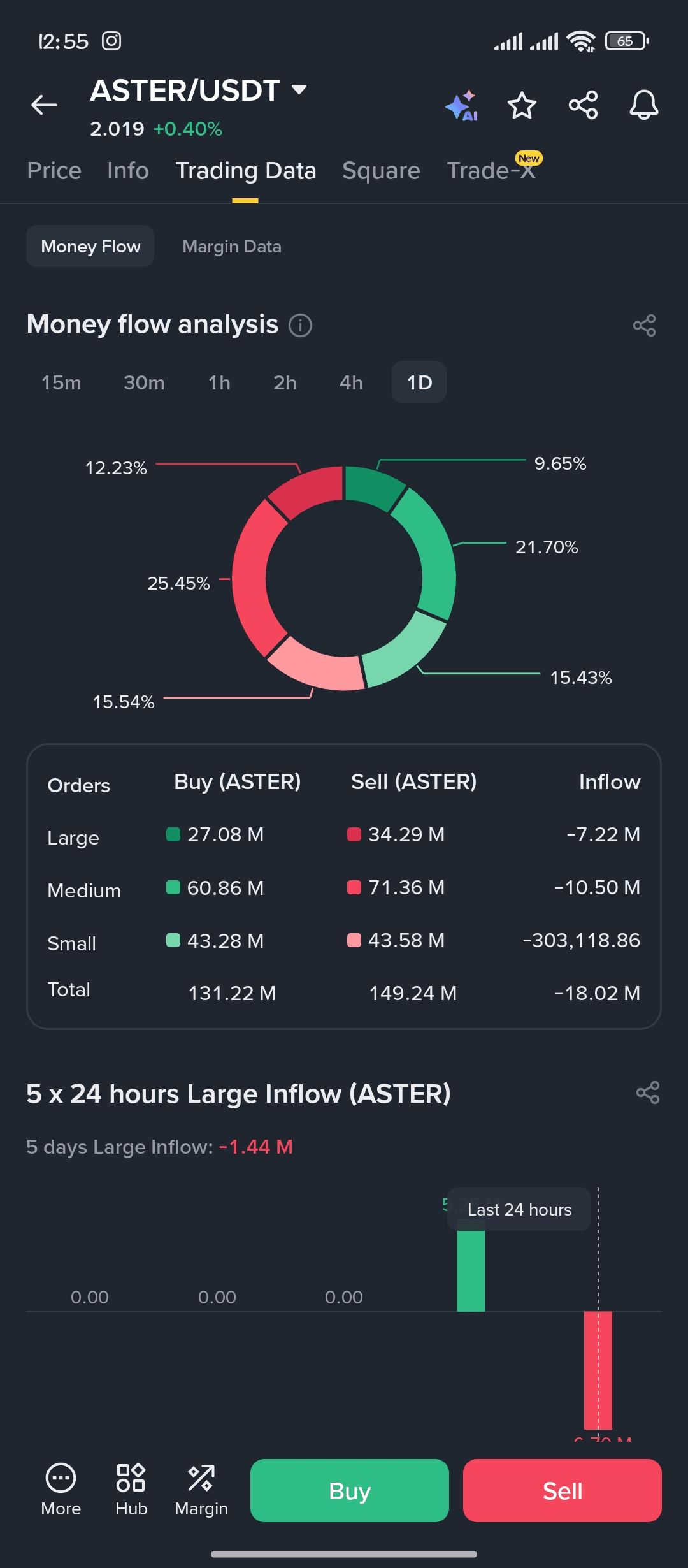 Las salidas se dispararon a -6.7M ASTER, y los datos totales de 24 horas muestran que los vendedores superan ligeramente a los compradores. La acción del precio sigue estable entre 1.90 y 2.19, mostrando soporte en torno a 1.95 y resistencia ajustándose cerca de 2.10.