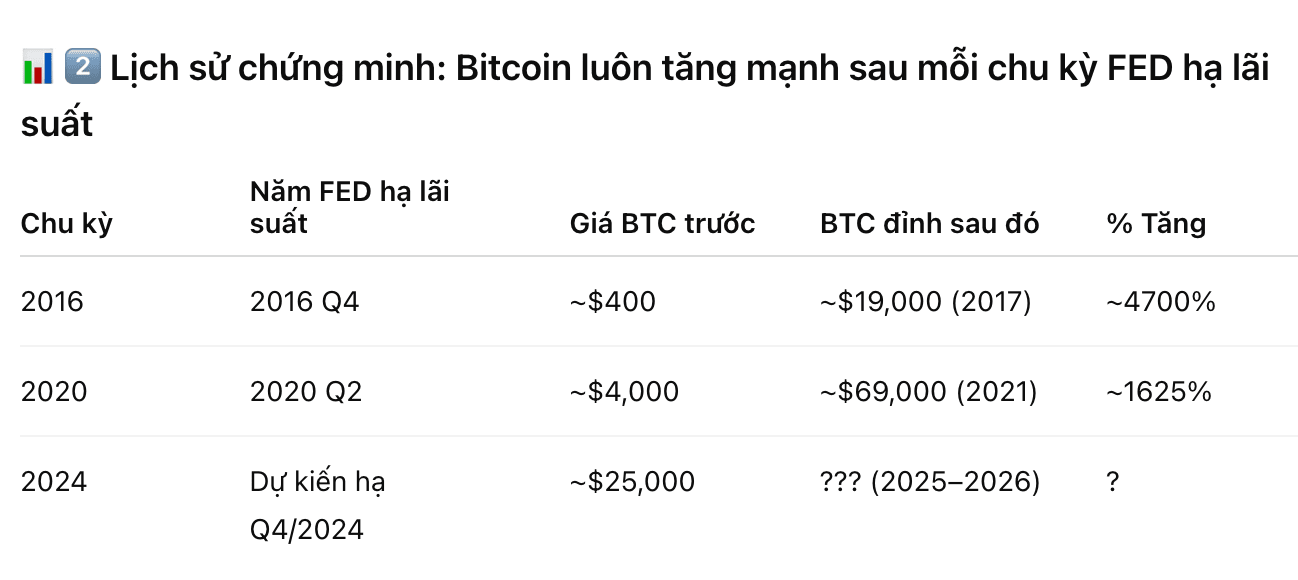 📊 2️⃣ La historia demuestra: Bitcoin siempre sube fuertemente después de cada ciclo en que la FED baja las tasas de interés.