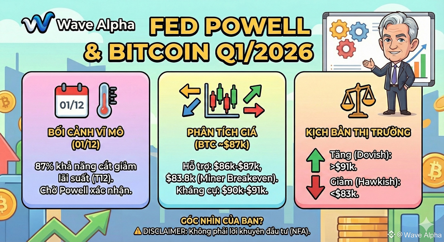 🌐 Thị trường hiện đang định giá 87% khả năng FED sẽ cắt giảm lãi suất trong tháng 12. Bài phát biểu của ông Powell sẽ là manh mối cuối cùng để xác nhận xem liệu sự lạc quan này có "đi quá xa" hay không. Tín hiệu từ sự kiện này sẽ thiết lập nền tảng tâm lý (sentiment) cho cả Quý I/2026.