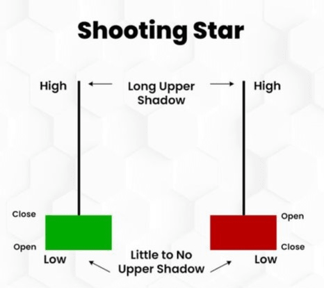 Lo opuesto a un Martillo. Un cuerpo pequeño en la PARTE INFERIOR con una mecha larga arriba. Aparece después de una tendencia alcista.