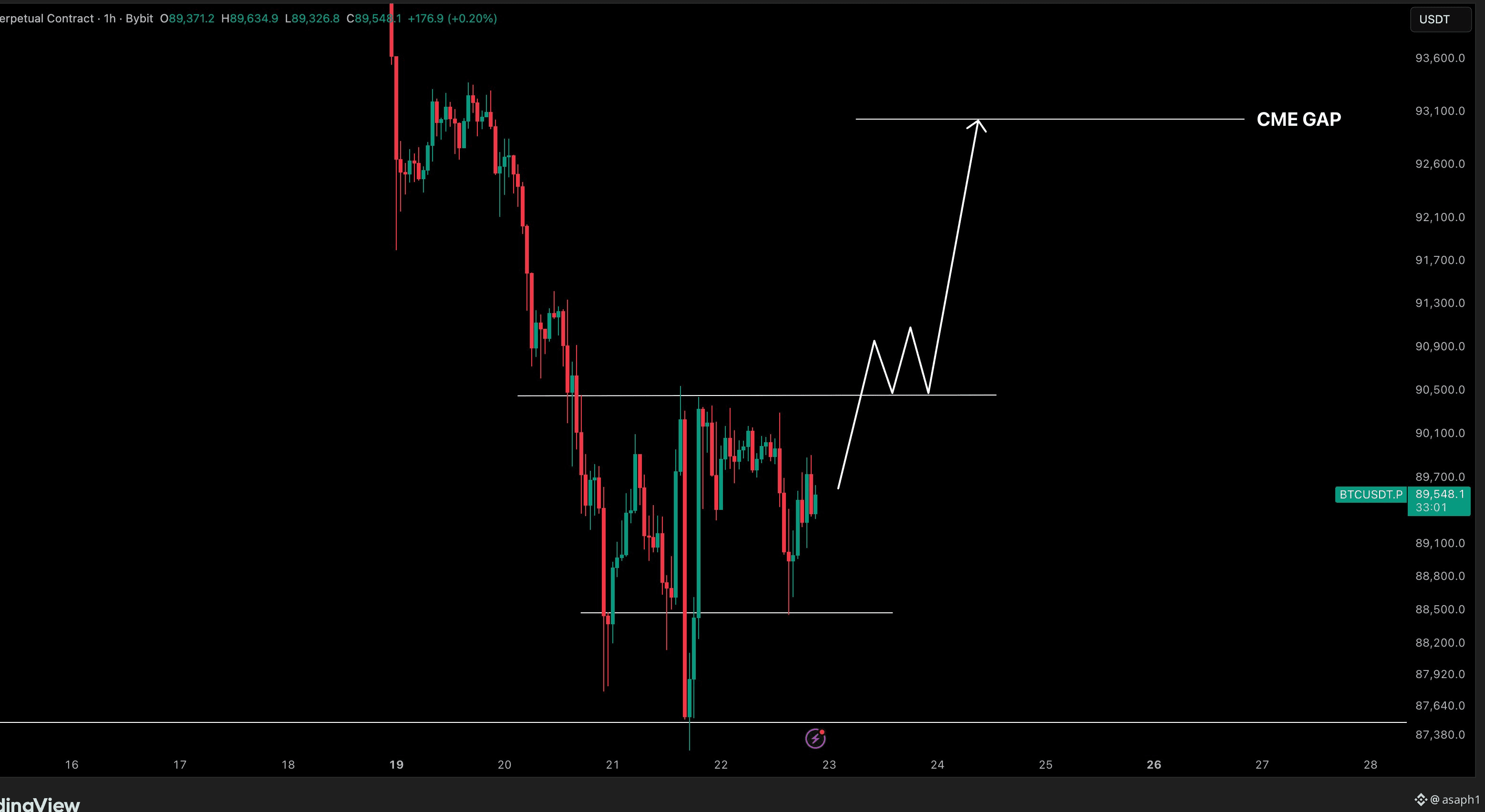 El Objetivo "CME GAP": Como ves en la flecha blanca, el precio tiene una cuenta pendiente en los $93,000. En el mundo del trading, esos huecos (gaps) del mercado regulado de Chicago son como vacíos que el precio siempre quiere ir a rellenar. ¡Estamos a un suspiro de ese impulso!