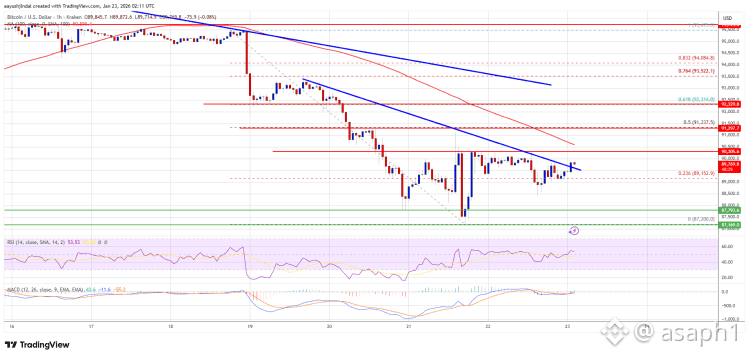 Mira, la cosa está así: nuestra moneda reina se dio un golpe duro recientemente, cayendo desde los $95,475 hasta tocar fondo en los $87,200. Pero ojo, que no todo es drama. En las últimas horas, Bitcoin ha empezado a sacar pecho y ya rompió una tendencia bajista que lo tenía asfixiado en los $89,700. Ahorita mismo estamos en una fase de consolidación, lo que en español claro significa que el mercado está tomando aire y decidiendo hacia dónde va a saltar. 🏃♂️💨